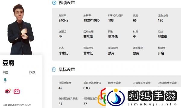 绝地求生游戏主播灵敏度设置分别来自邦Sa/95tongxue/预见/豆腐/666GN/幻灭/铲铲