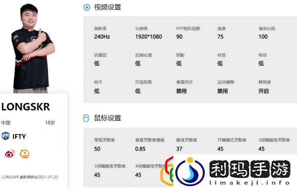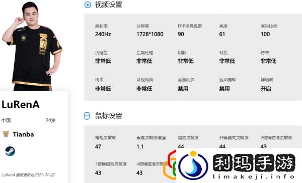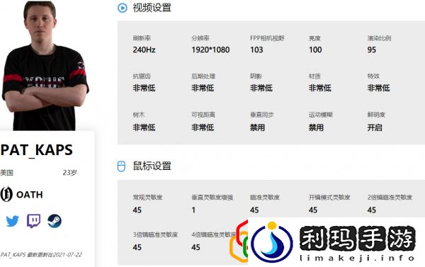 绝地求生职业选手灵敏度设置分别来自LONGSKR/PAT_KAPS/XXXLu/Eaddy/Inonix/Nourinz/LuRenA/Pio/Aqua5/Under