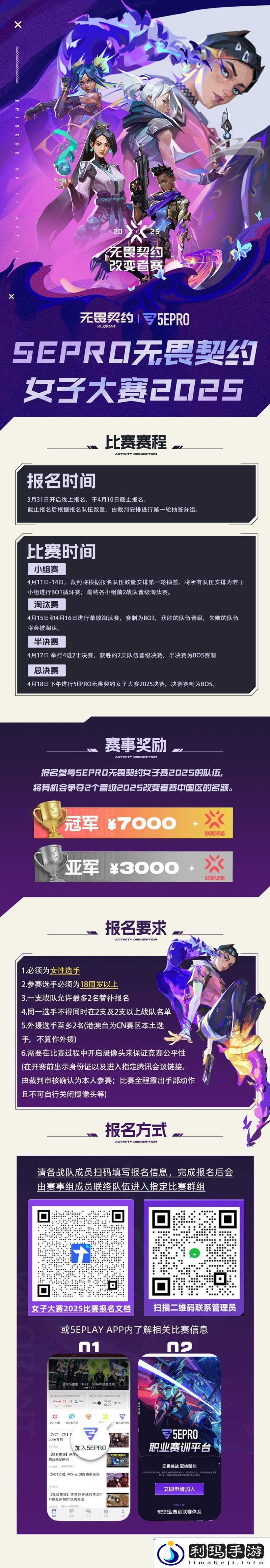 5EPRO无畏契约女子大赛2025暨无畏契约2025改变者赛中国区预选赛今日正式公布,即日起,报名参与5EPRO无畏契约女子大赛2025的队伍,将有机会争夺2个晋级2025改变者赛中国区的名额。