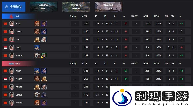 图一深海明珠,BLG 13:4 AG,图二裂变峡谷,BLG 13:5 AG。王昊哲拿到了全场最高的44总击杀,两张地图从局势来看,两队存在不小的实力差距,AG目前三站皆负出线形势非常不利。