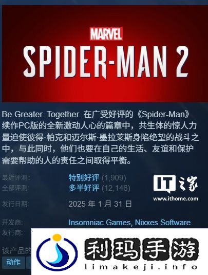 本站 4 月 1 日消息,索尼《漫威蜘蛛侠 2》游戏于 2025 年 1 月 31 日登陆 Steam 平台。然而,Valve 认为该游戏当时与 Steam Deck 兼容性不足,因此在发售时没有给予“Steam Deck Verified”标签。
