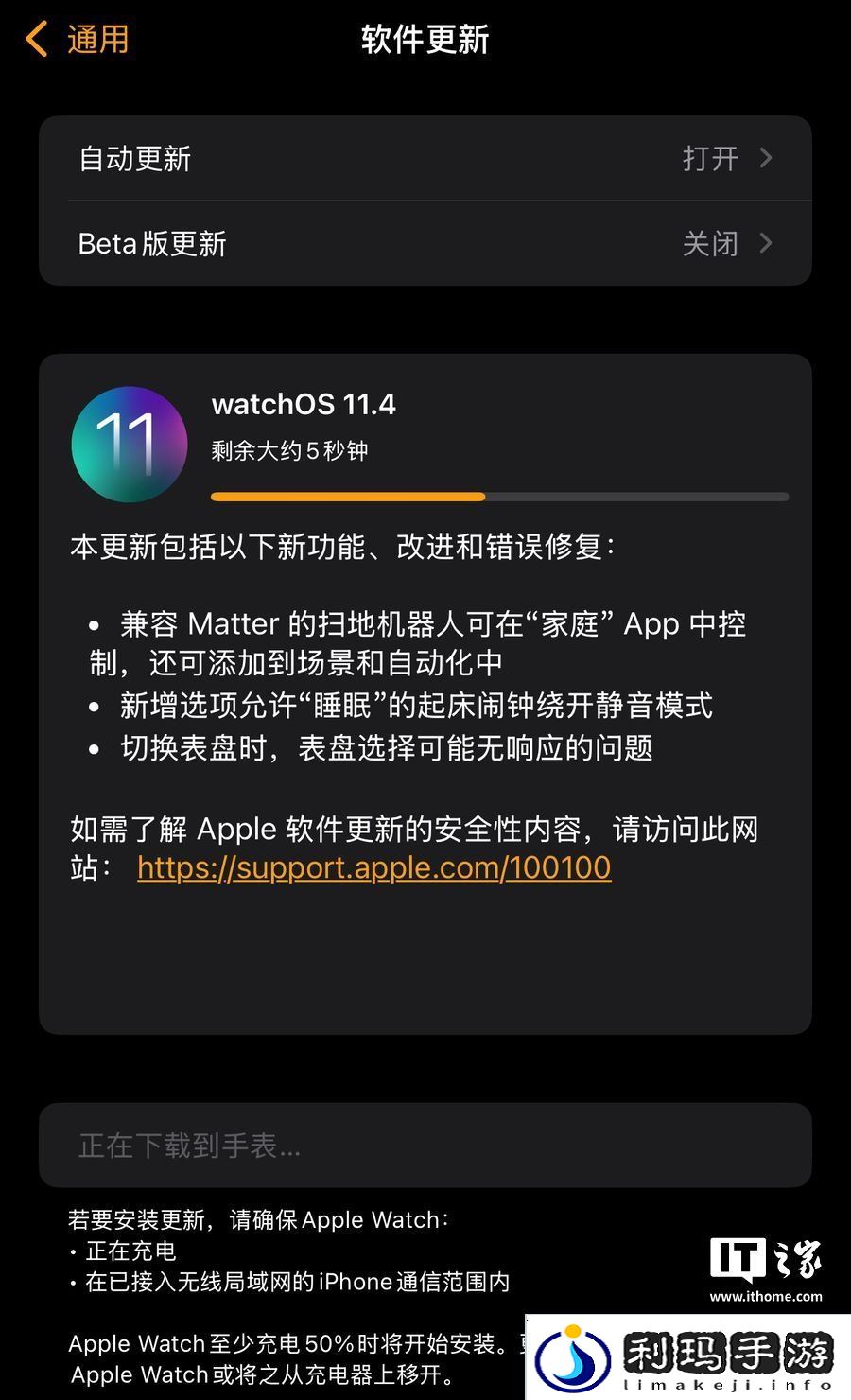 本站注:苹果于本周一短暂发布 watchOS 11.4 后两分钟内突然撤回,目前该更新已重新上架。官方未说明初始撤回原因,但确认版本号仍为 22T251。这是 watchOS 11 自 2024 年 9 月推出自定义运动圆环、健康监测等重磅功能后,首次实质性功能更新。